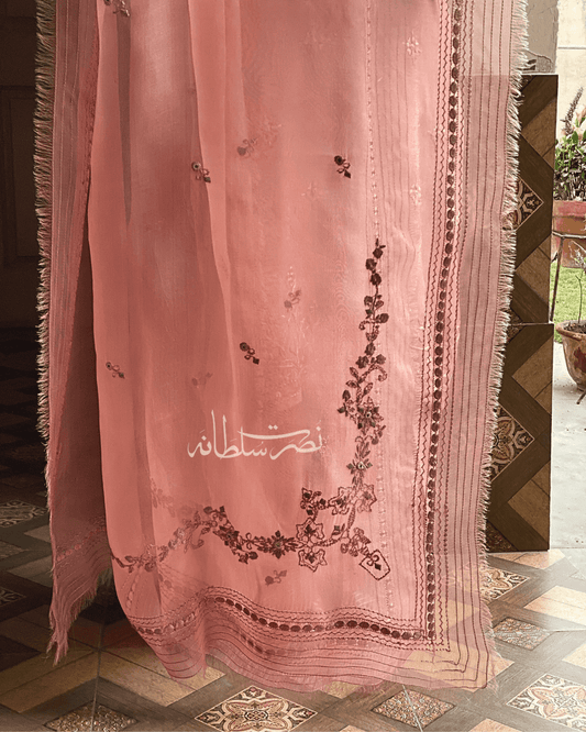 Dusty Peach Handcrafted Pure Organza Dupatta