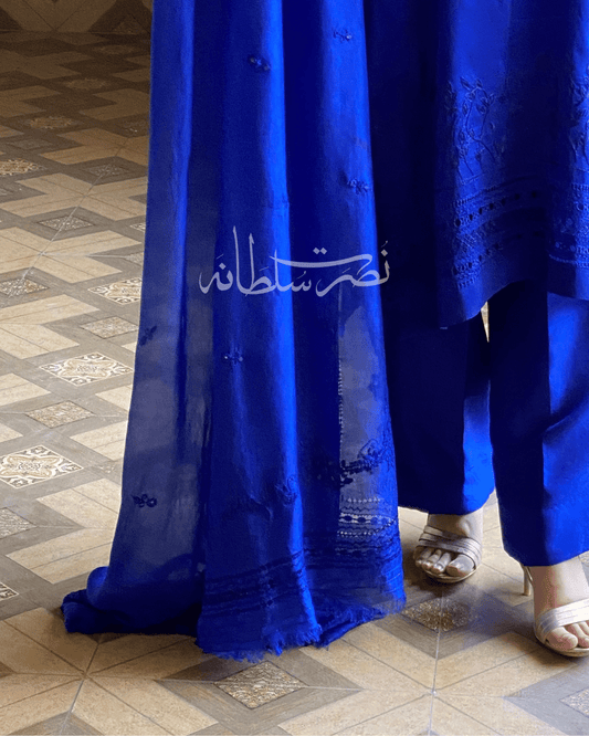 Royal Blue Shade Handcrafted Pure Organza Dupatta