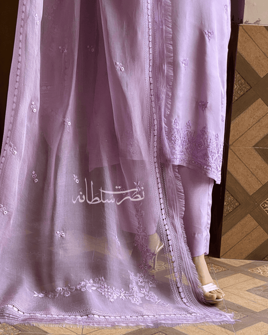 Lilac Shade Handcrafted Pure Organza Dupatta