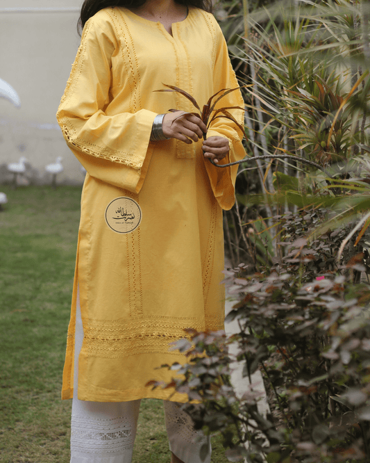 Handcrafted Tarkashi Work Pure Lawn Shirt - Pret - Fresh Yellow