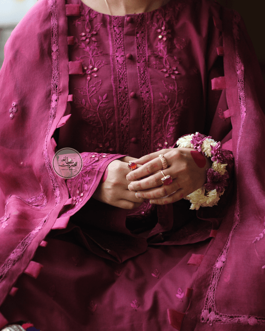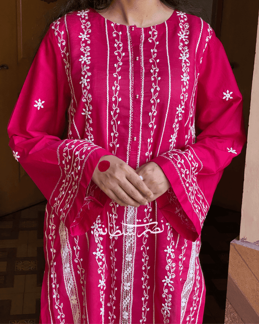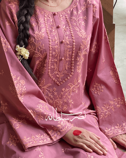 Pure Lawn Hand Embroidered Shirt - Pret - Reddish Pink Shade