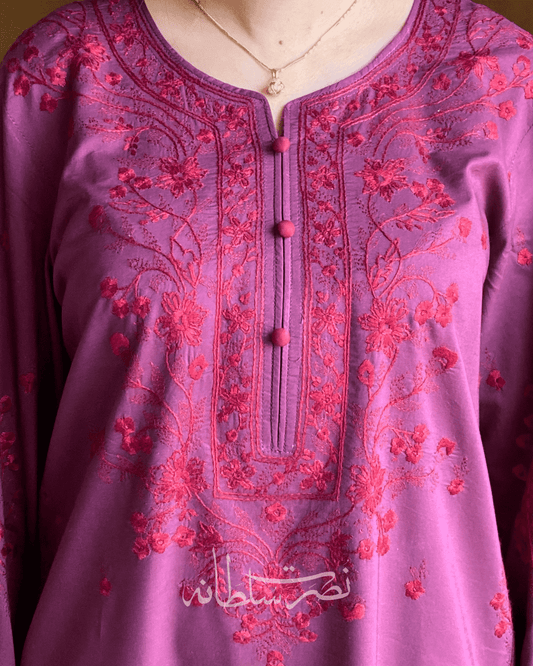 Classic Handcrafted Tarkashi, Tukri and Aari Work Shirt - Mulberry Pink Shade