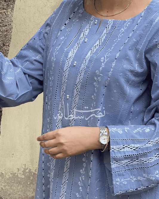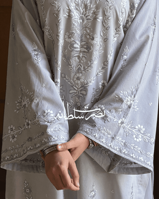 Classic Hand Embroidered Lawn Kurta - Zinc Shade