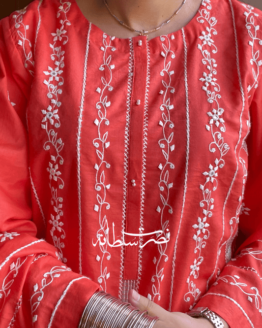 Orange - Pure Swiss Lawn Handcrafted Ralli Work – 2 Piece