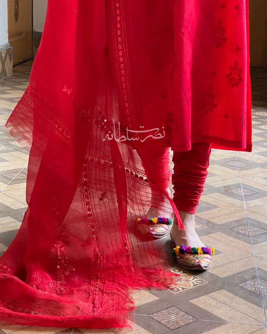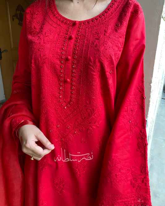 Classic Red Hand Embroidered Mirror Work Kurta