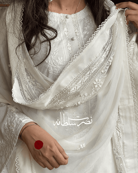 Classic Pearl White Handcrafted Tarkashi Shirt - Pret - Lawn