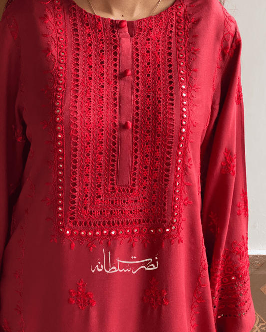 Crimson Red - Hand Embroidery and Tarkashi Kurta - Marina